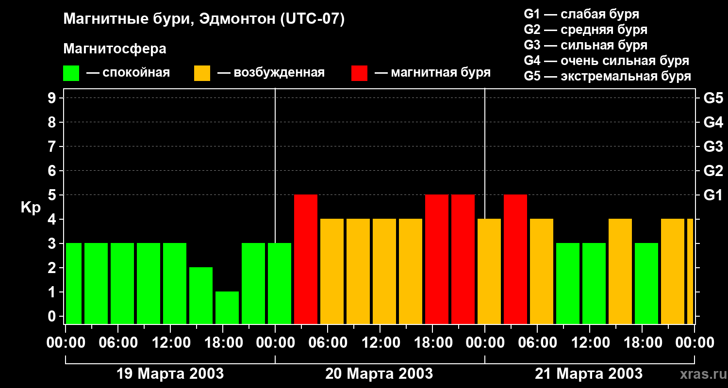 Магнитные бури в Эдмонтоне — 21 марта 2003 года