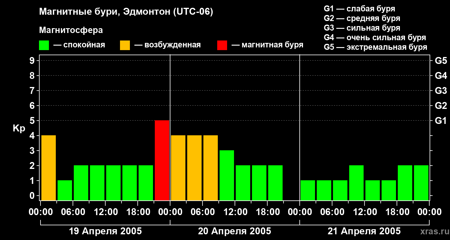 Магнитные бури в Эдмонтоне — 21 апреля 2005 года