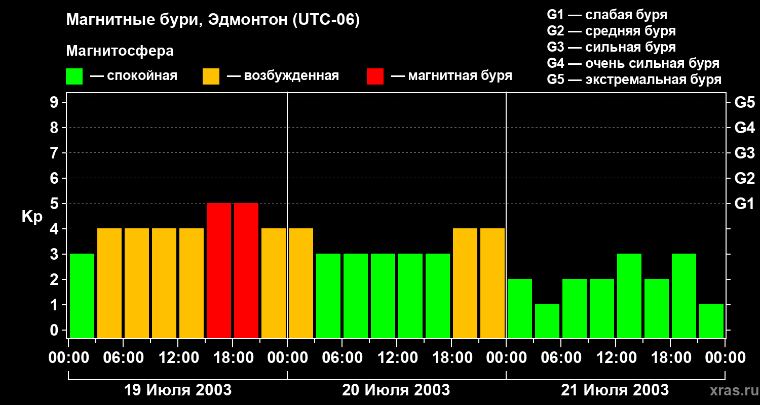 Магнитные бури в Эдмонтоне — 21 июля 2003 года
