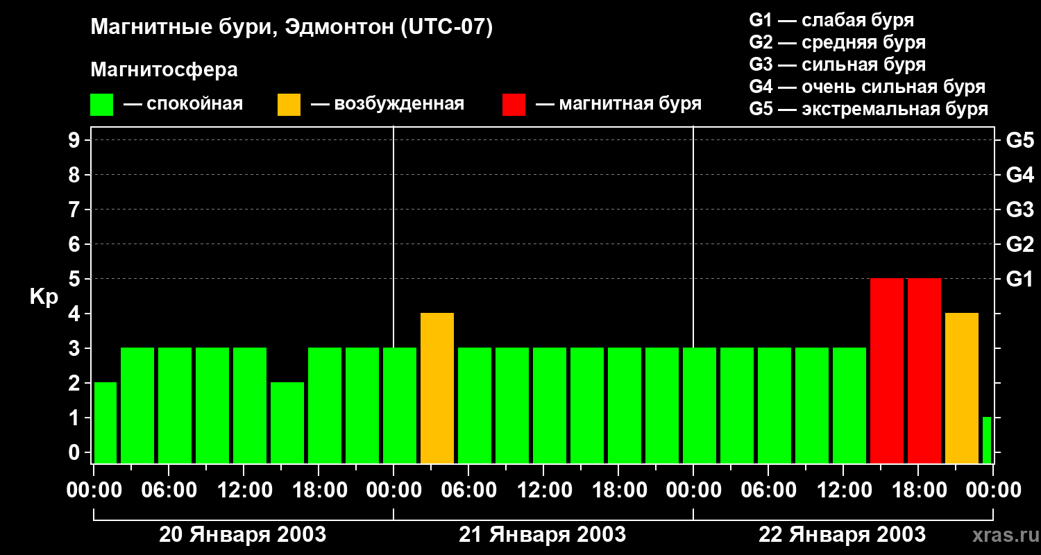Магнитные бури в Эдмонтоне — 22 января 2003 года