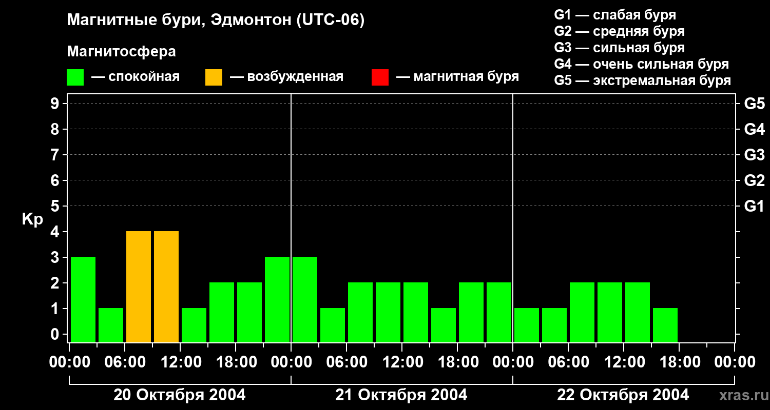 Магнитные бури в Эдмонтоне — 22 октября 2004 года