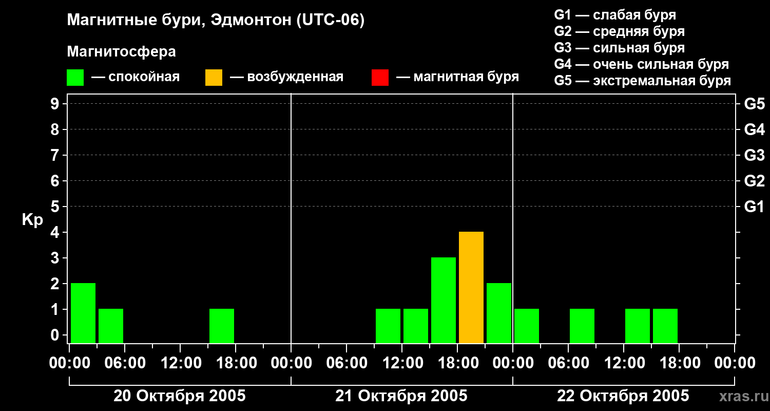 Магнитные бури в Эдмонтоне — 22 октября 2005 года