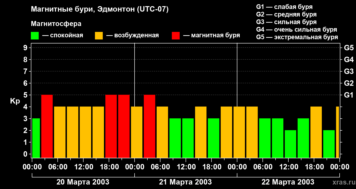 Магнитные бури в Эдмонтоне — 22 марта 2003 года