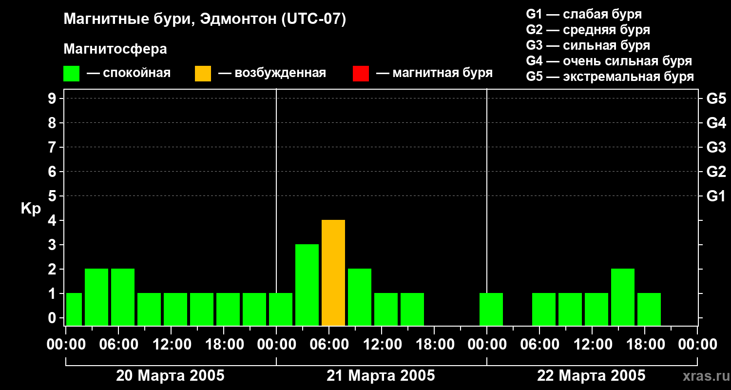 Магнитные бури в Эдмонтоне — 22 марта 2005 года