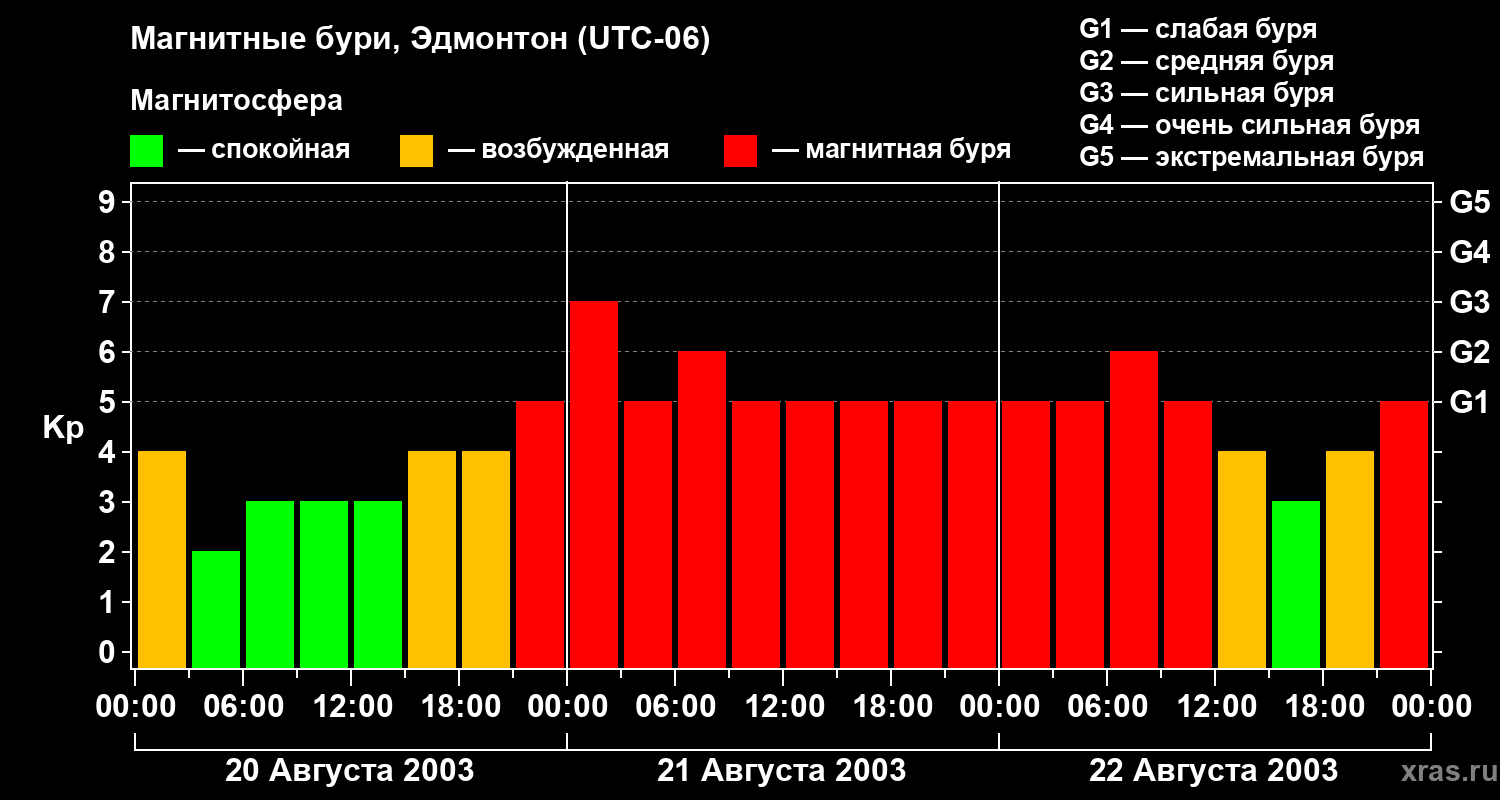 Магнитные бури в Эдмонтоне — 22 августа 2003 года