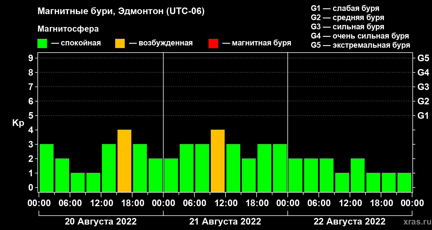 Магнитные бури в Эдмонтоне — 22 августа 2022 года