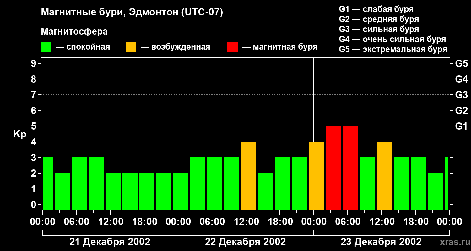Магнитные бури в Эдмонтоне — 23 декабря 2002 года