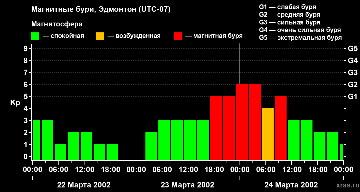 Магнитные бури в Эдмонтоне — 24 марта 2002 года