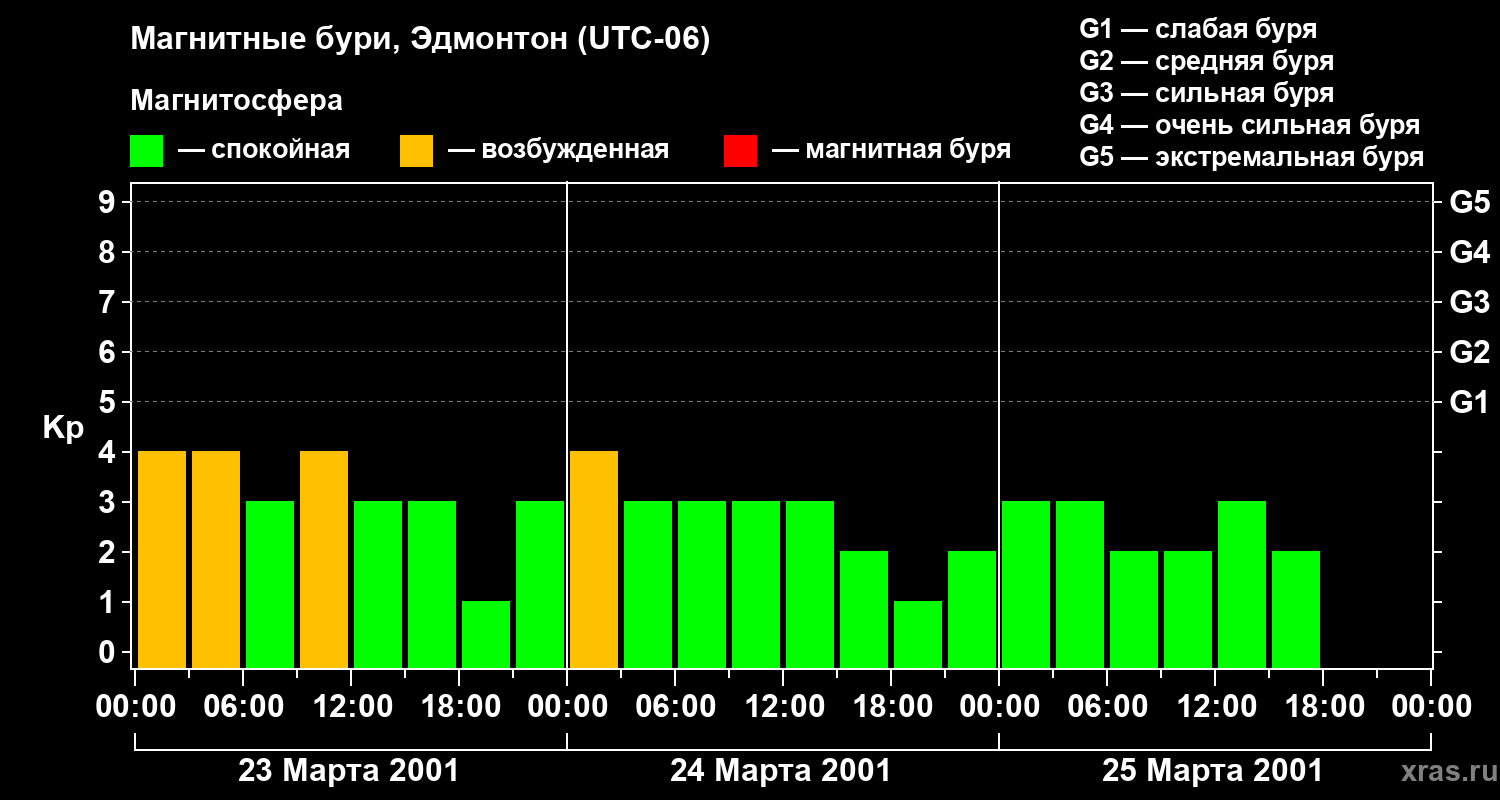 Магнитные бури в Эдмонтоне — 25 марта 2001 года