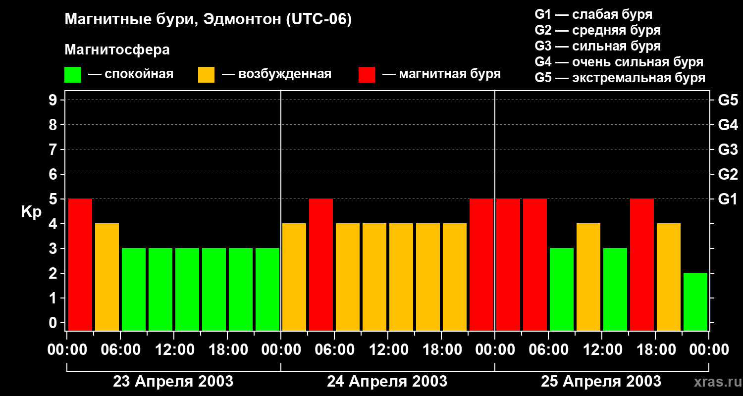 Магнитные бури в Эдмонтоне — 25 апреля 2003 года