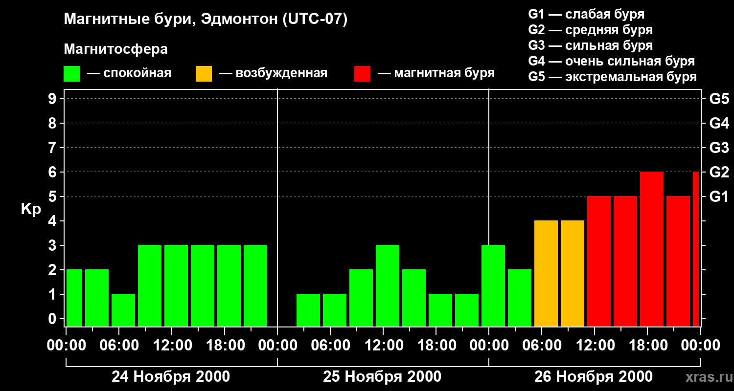 Магнитные бури в Эдмонтоне — 26 ноября 2000 года