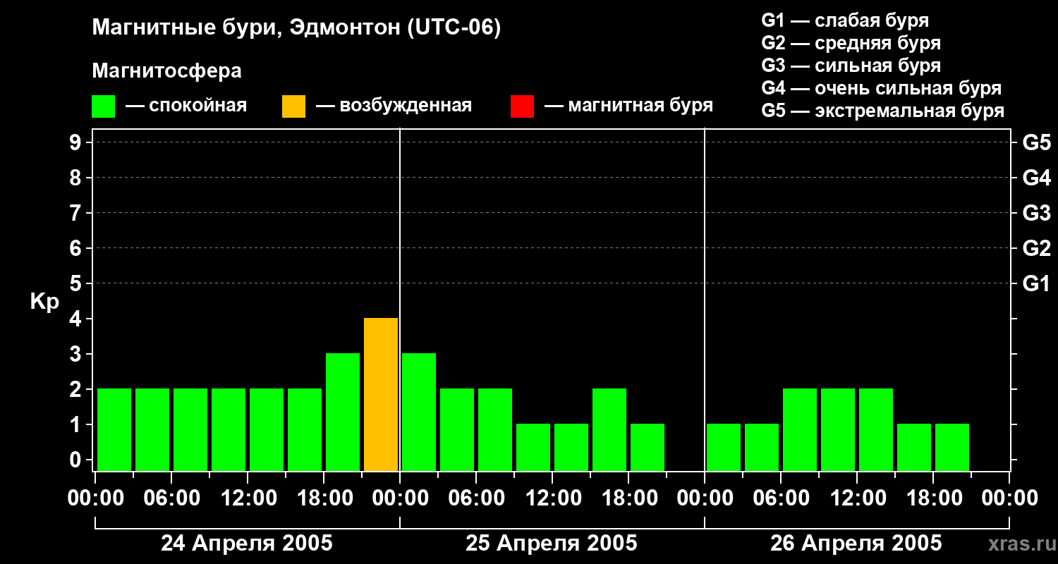 Магнитные бури в Эдмонтоне 26 апреля 2005 года