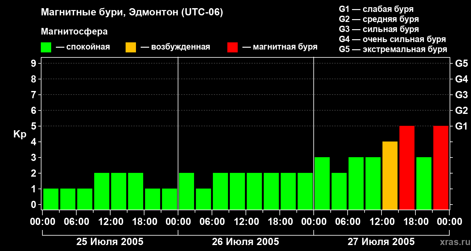 Магнитные бури в Эдмонтоне 27 июля 2005 года