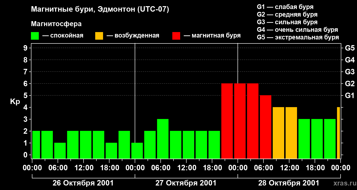 Магнитные бури в Эдмонтоне — 28 октября 2001 года
