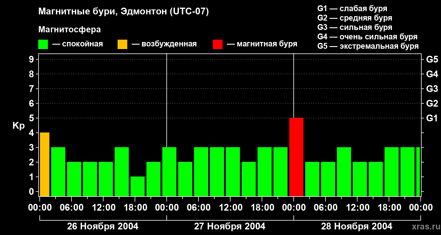 Магнитные бури в Эдмонтоне — 28 ноября 2004 года
