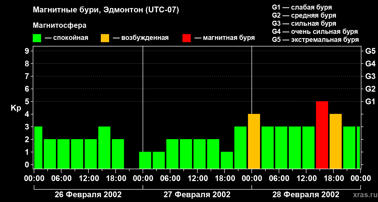 Магнитные бури в Эдмонтоне — 28 февраля 2002 года