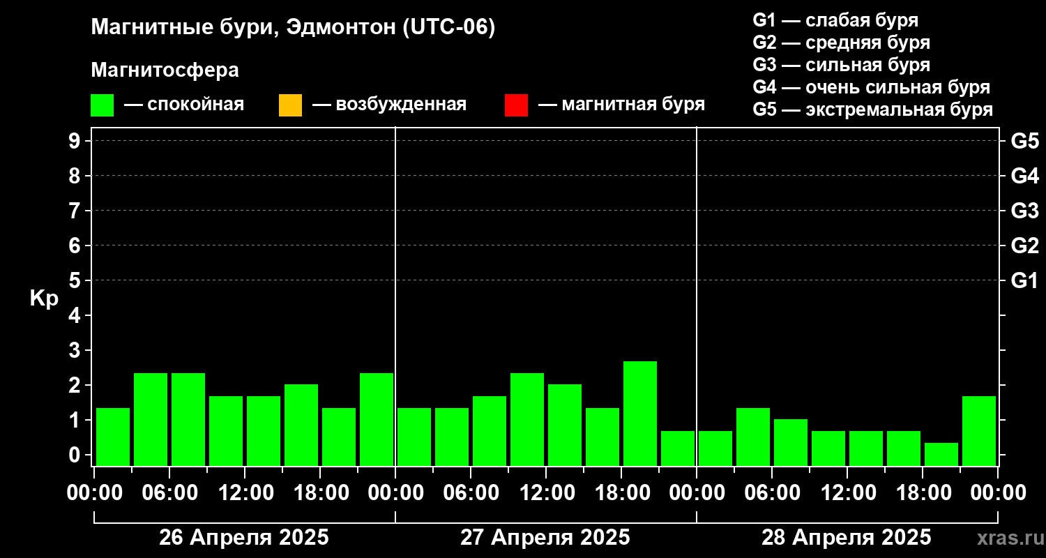 Магнитные бури в Эдмонтоне — 28 апреля 2025 года