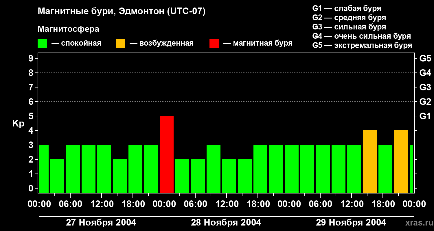 Магнитные бури в Эдмонтоне — 29 ноября 2004 года