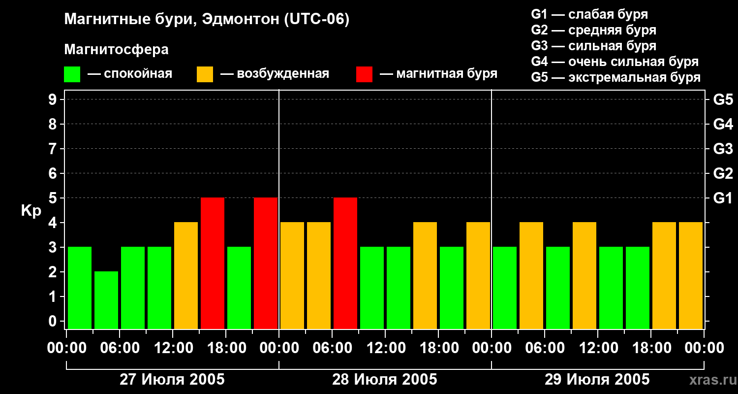 Магнитные бури в Эдмонтоне — 29 июля 2005 года