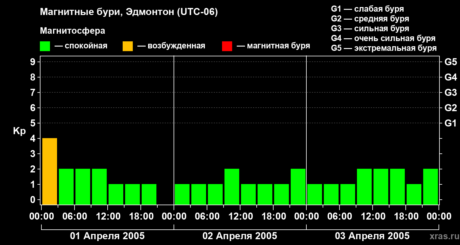 Магнитные бури в Эдмонтоне — 3 апреля 2005 года