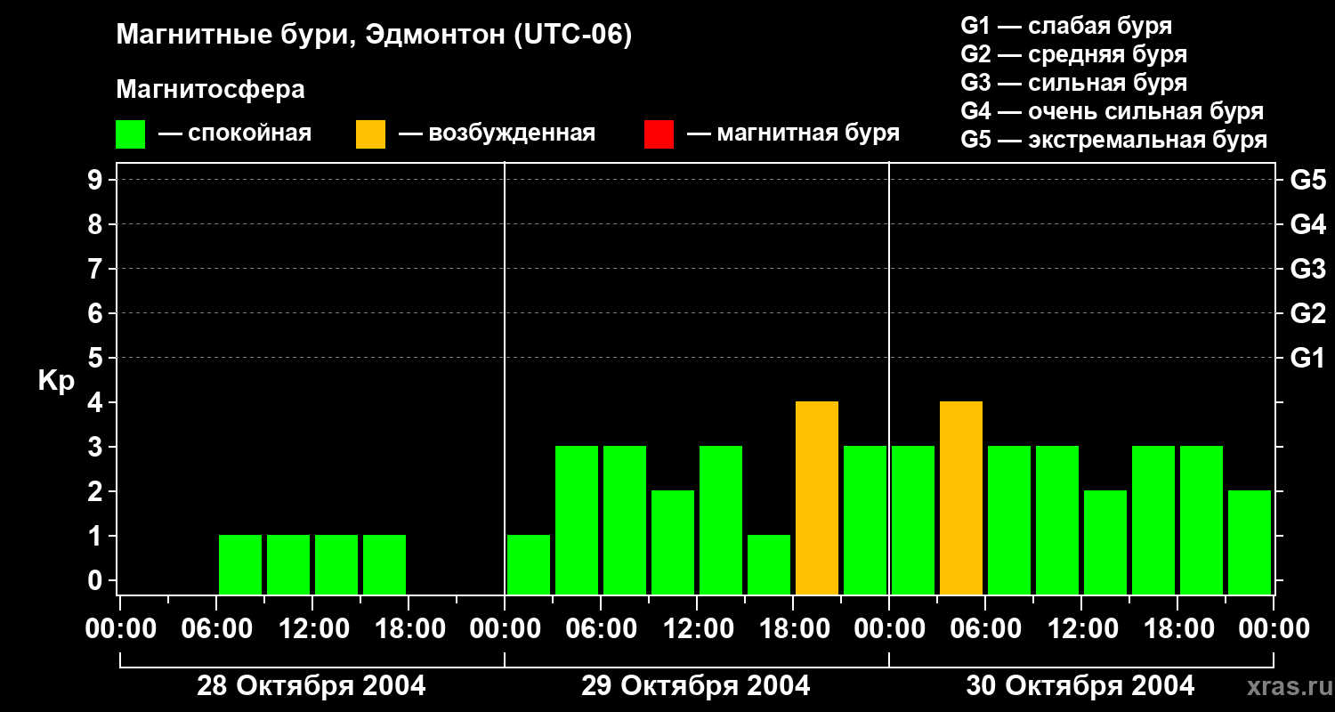 Магнитные бури в Эдмонтоне — 30 октября 2004 года