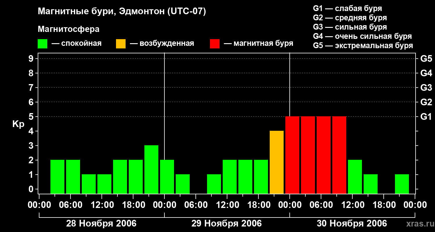 Магнитные бури в Эдмонтоне — 30 ноября 2006 года