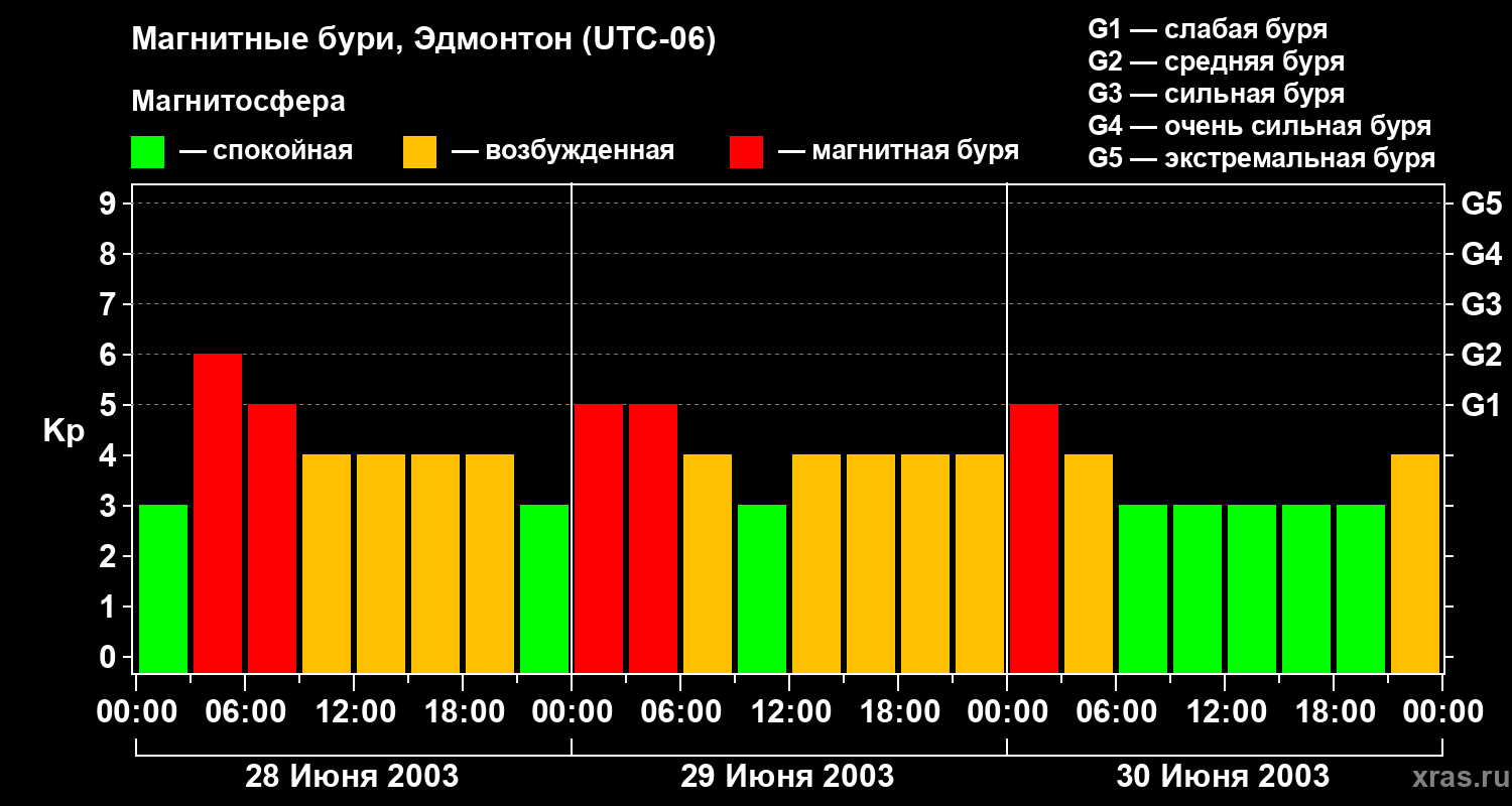 Магнитные бури в Эдмонтоне — 30 июня 2003 года