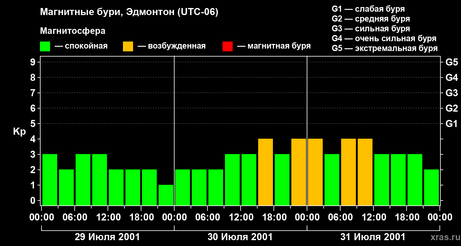 Магнитные бури в Эдмонтоне 31 июля 2001 года