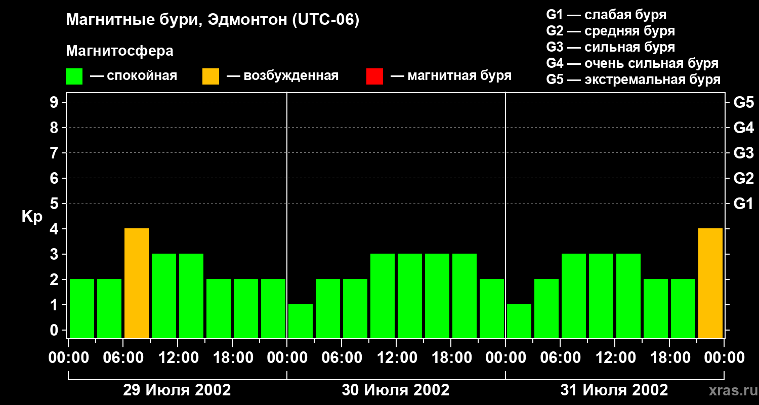 Магнитные бури в Эдмонтоне — 31 июля 2002 года