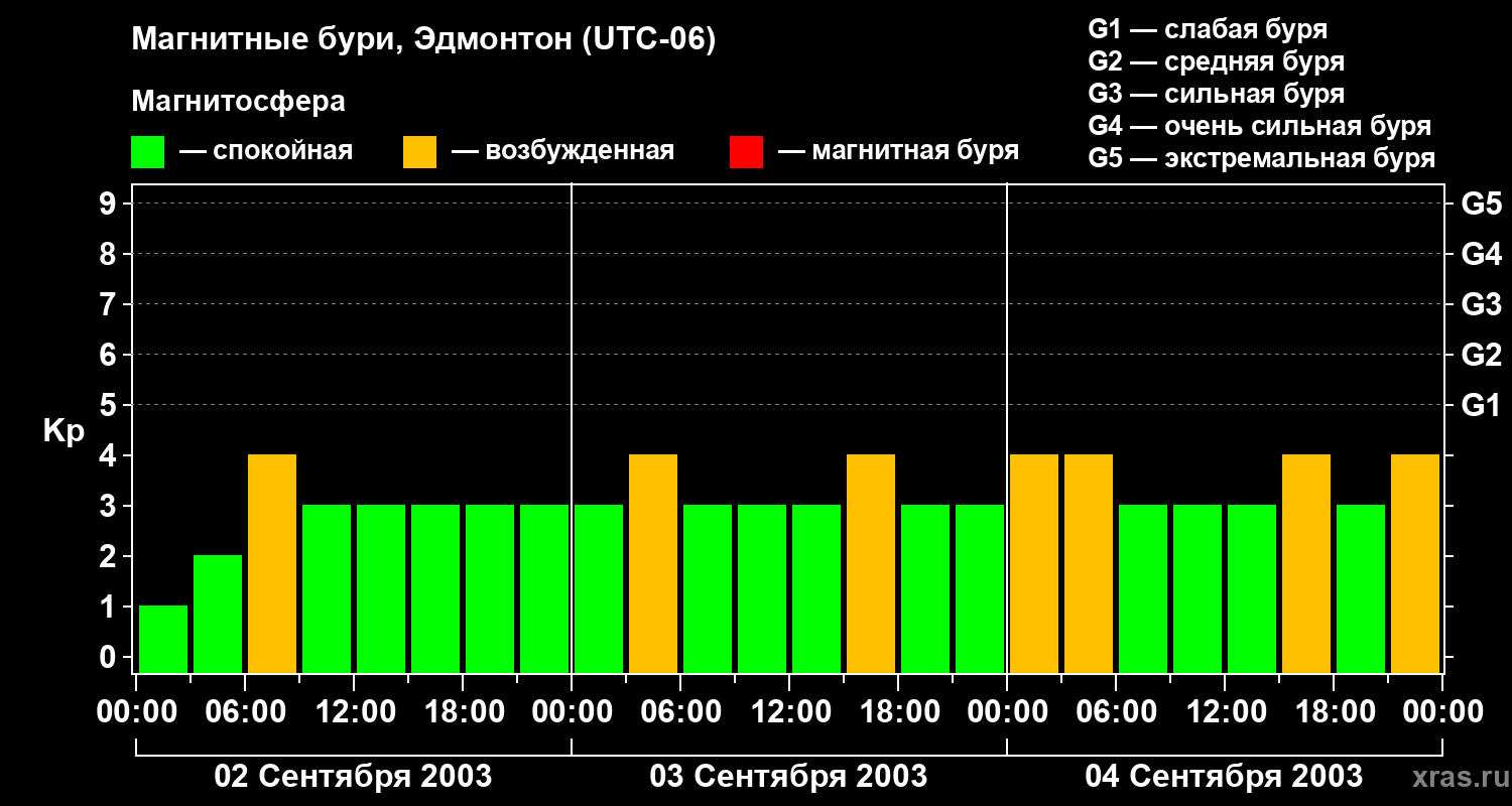 Магнитные бури в Эдмонтоне — 4 сентября 2003 года