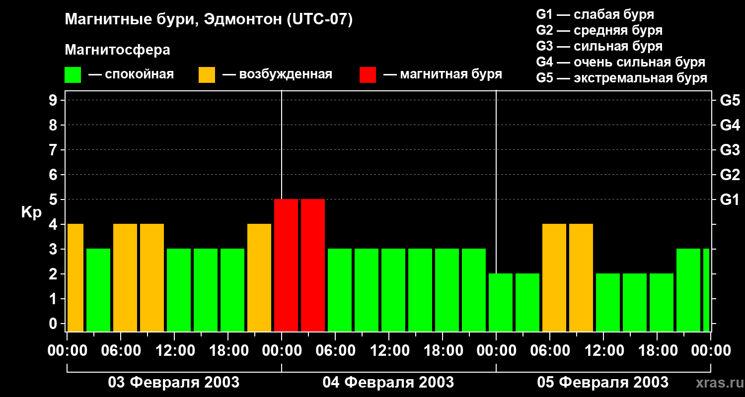 Магнитные бури в Эдмонтоне 5 февраля 2003 года