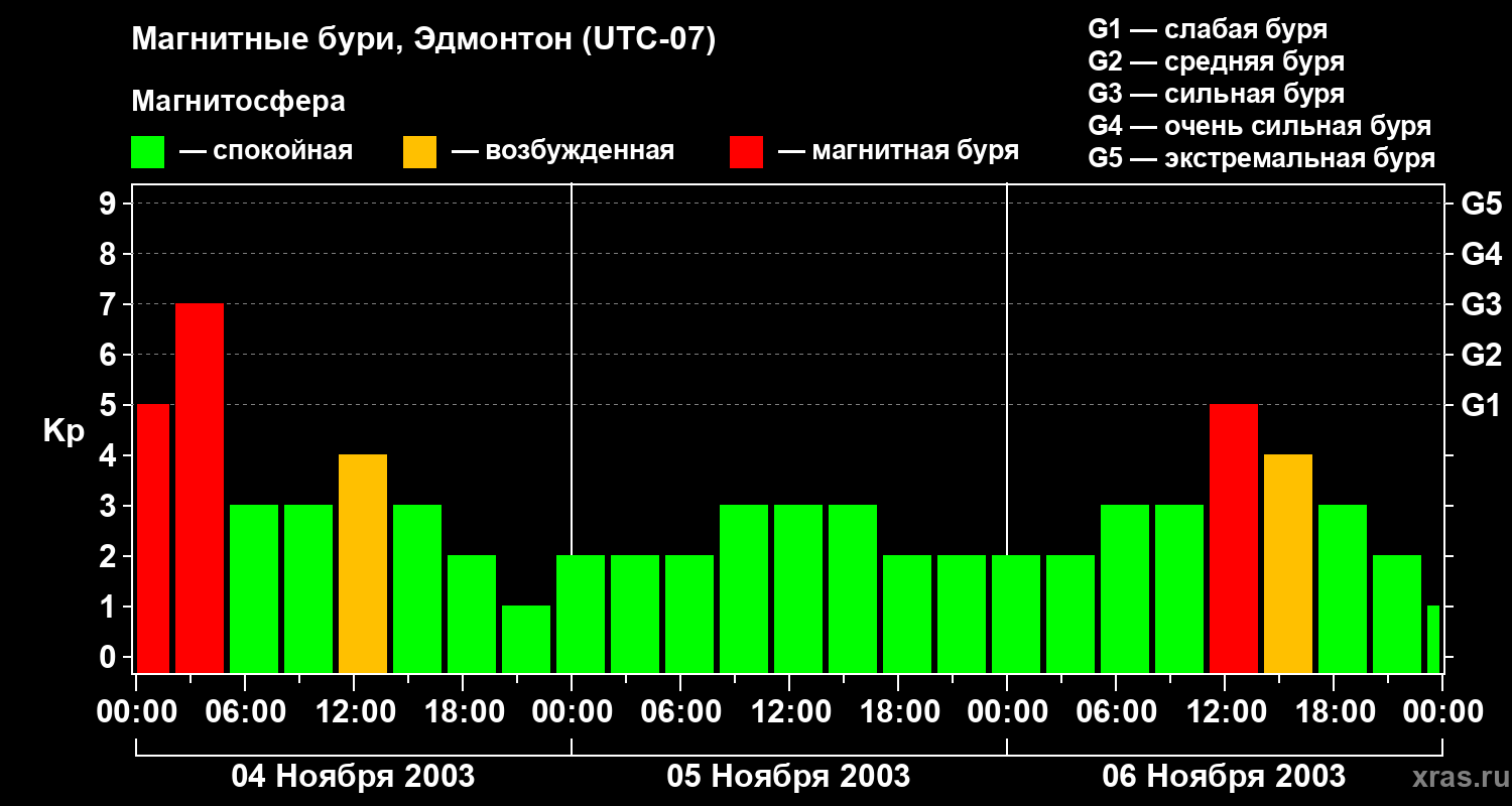 Магнитные бури в Эдмонтоне — 6 ноября 2003 года