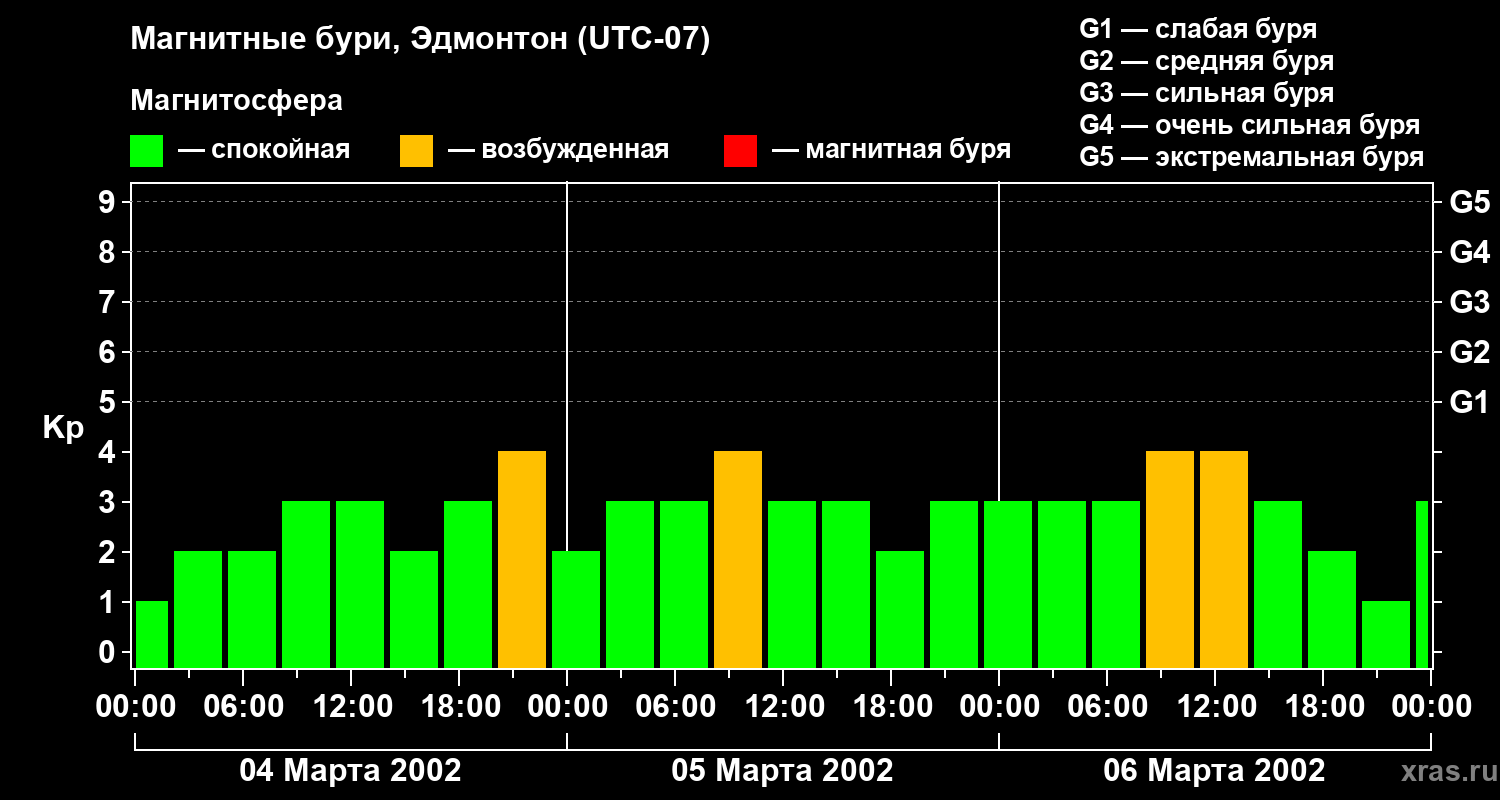 Магнитные бури в Эдмонтоне в марте 2002 года
