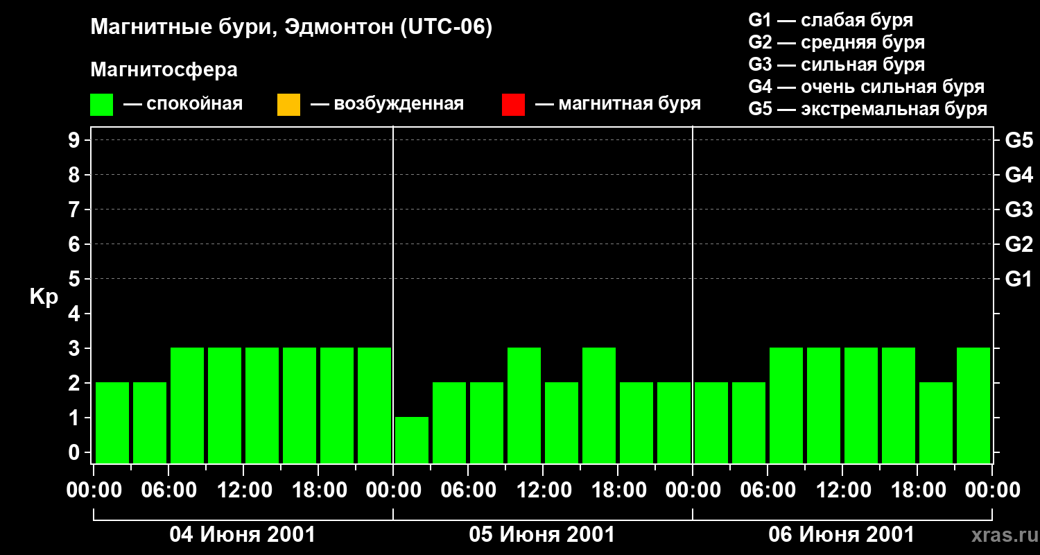 Магнитные бури в Эдмонтоне 6 июня 2001 года