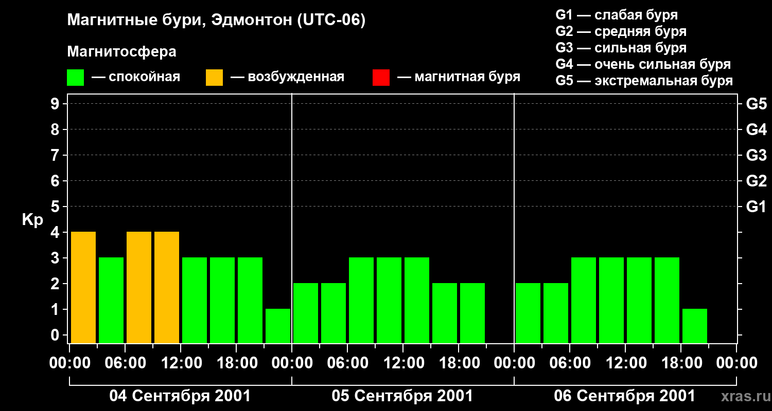 Магнитные бури в Эдмонтоне 6 сентября 2001 года