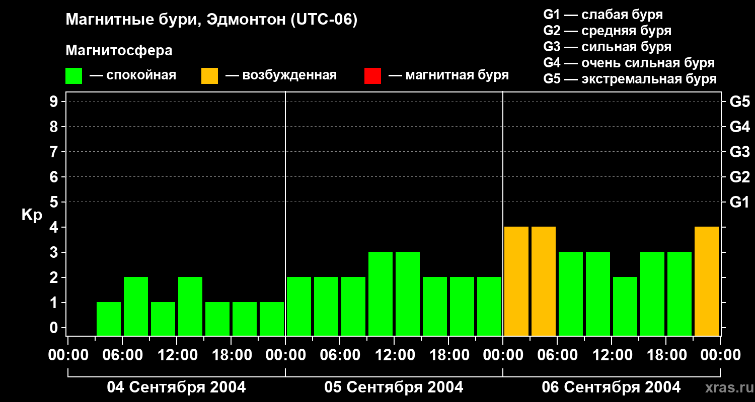 Магнитные бури в Эдмонтоне 6 сентября 2004 года