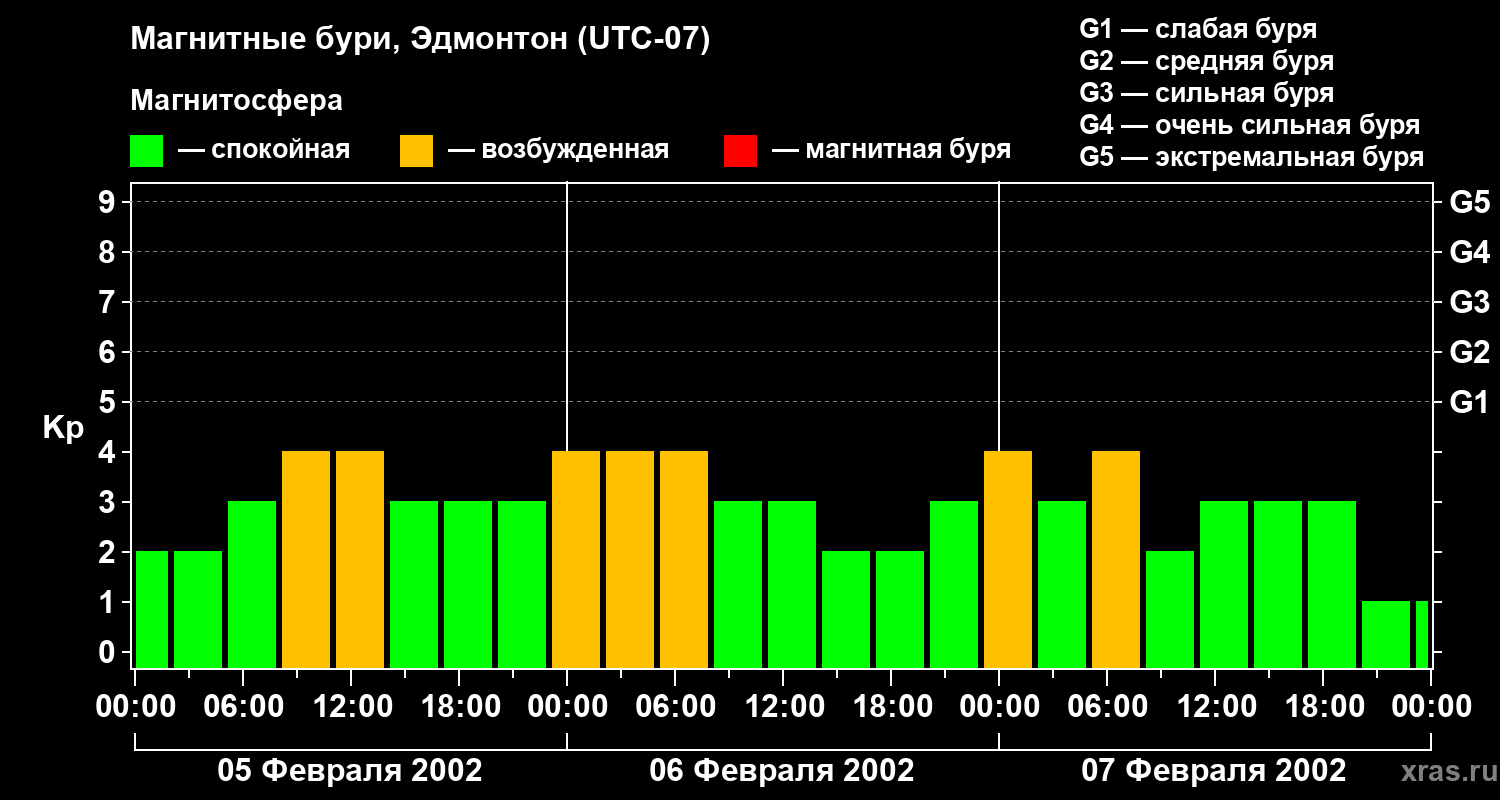 Магнитные бури в Эдмонтоне 7 февраля 2002 года