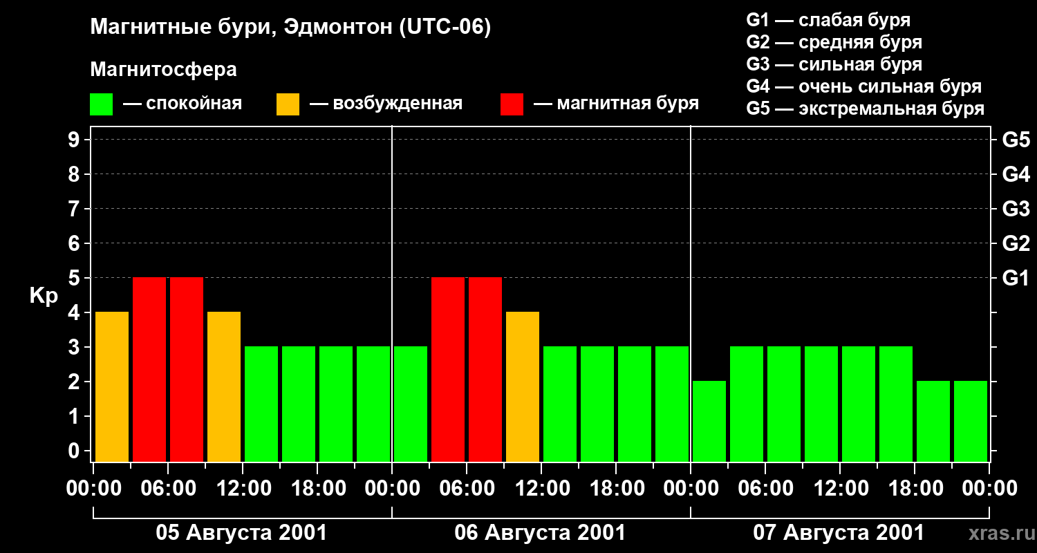 Магнитные бури в Эдмонтоне 7 августа 2001 года
