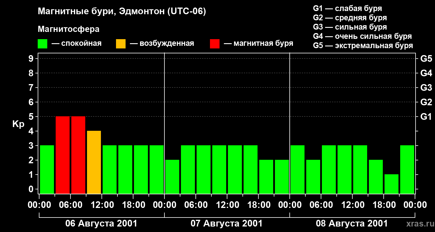 Магнитные бури в Эдмонтоне — 8 августа 2001 года