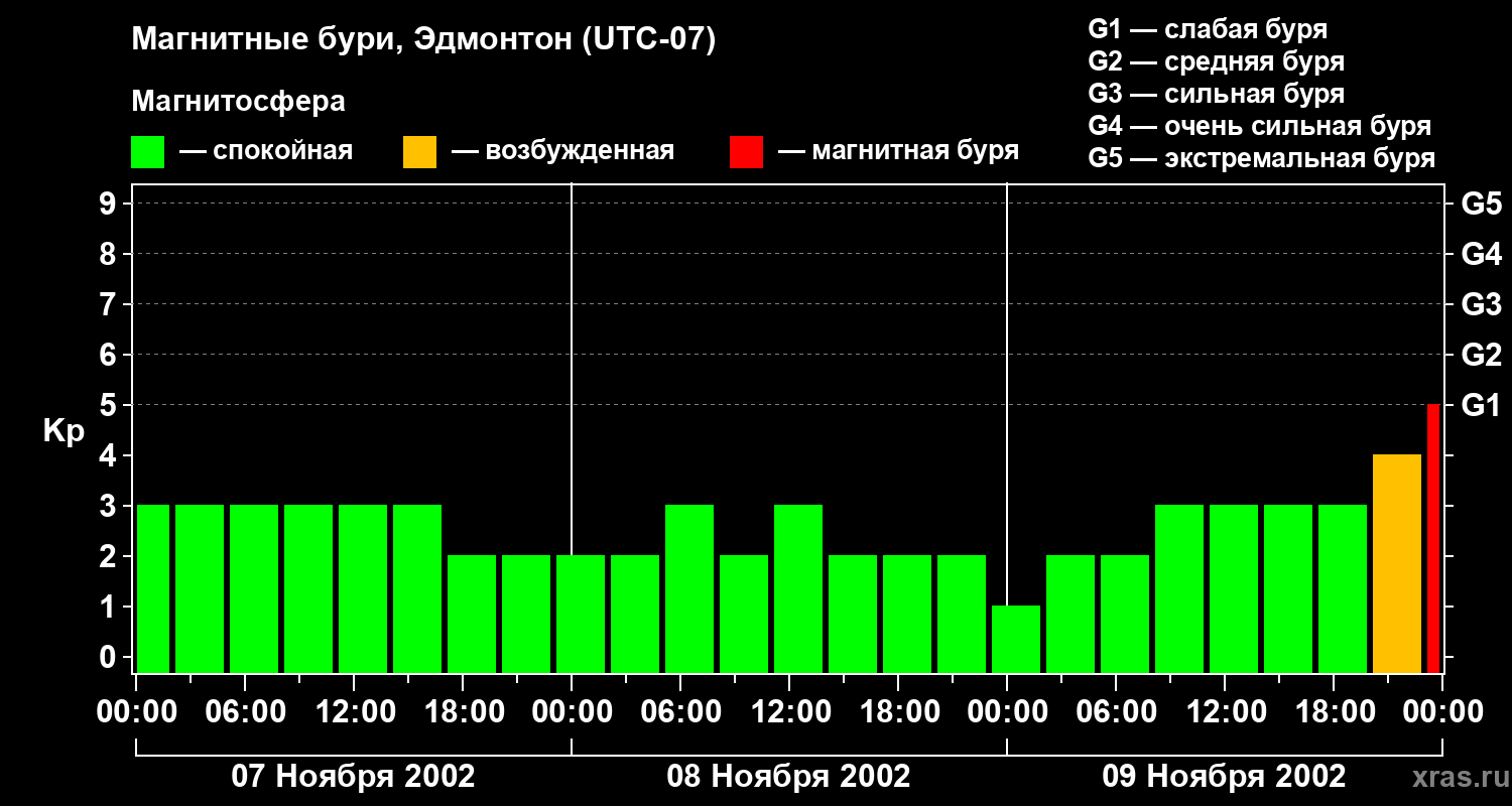 Магнитные бури в Эдмонтоне — 9 ноября 2002 года
