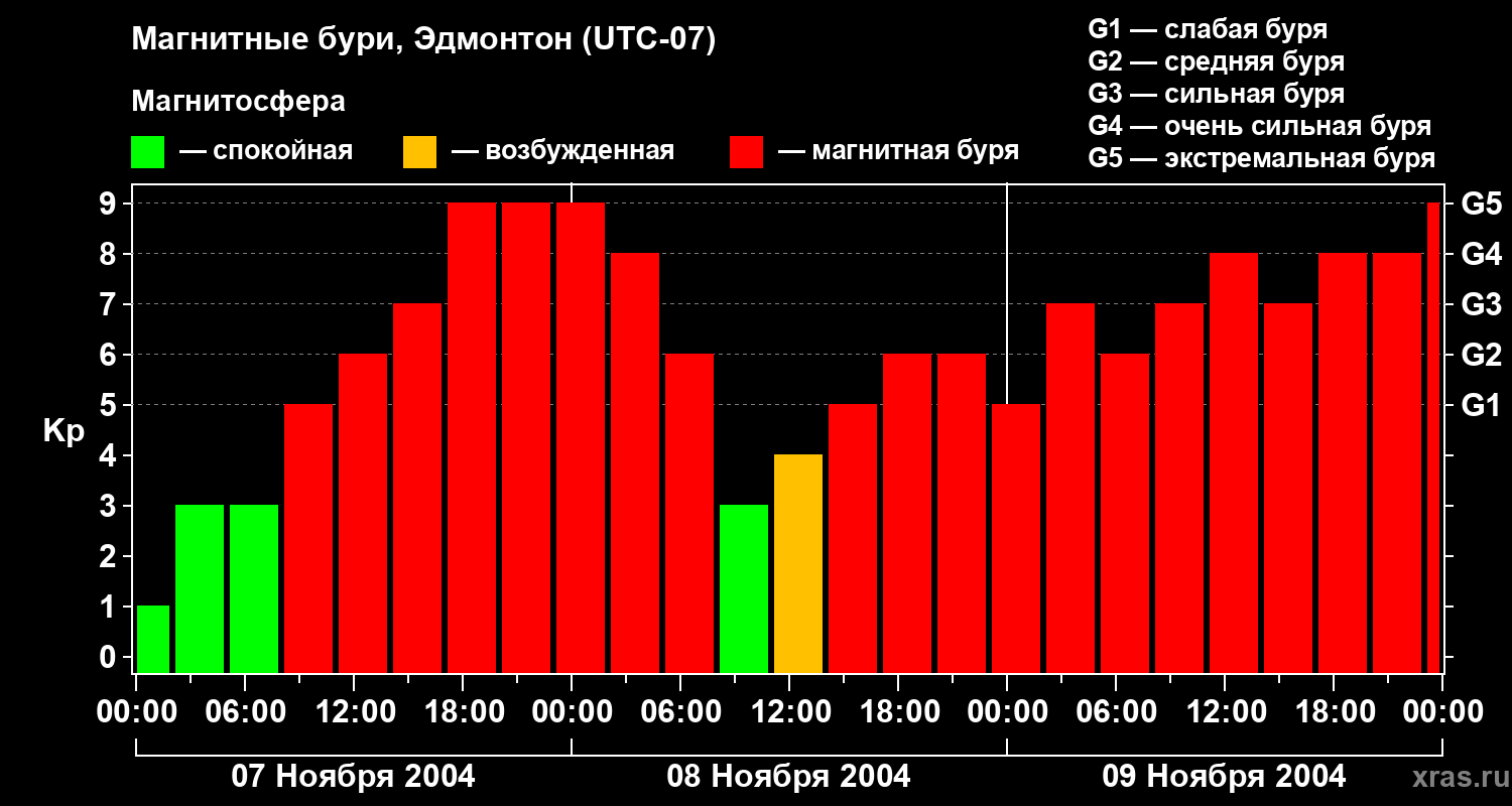Магнитные бури в Эдмонтоне — 9 ноября 2004 года