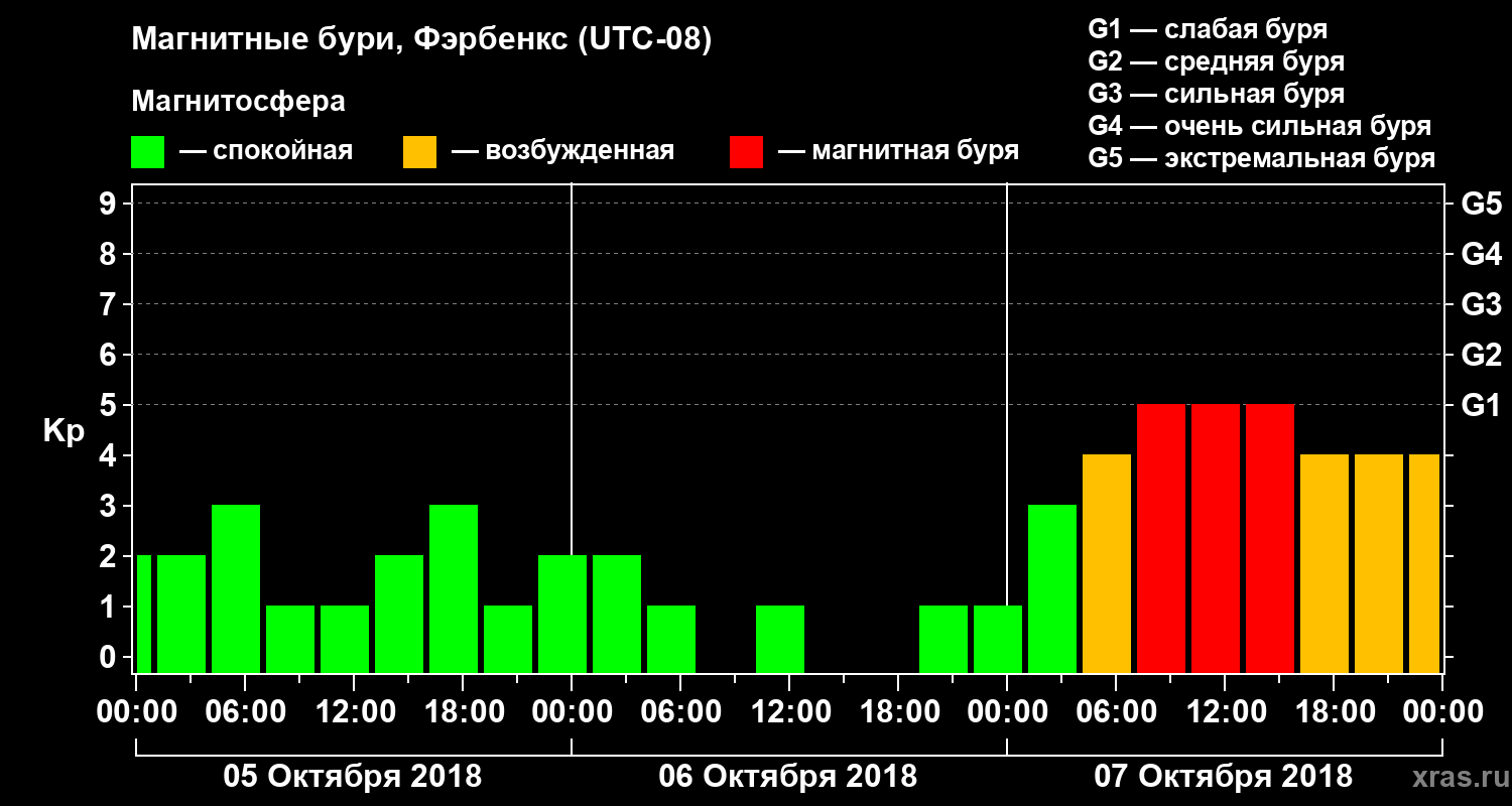 Магнитные бури в Фэрбенксе — 7 октября 2018 года
