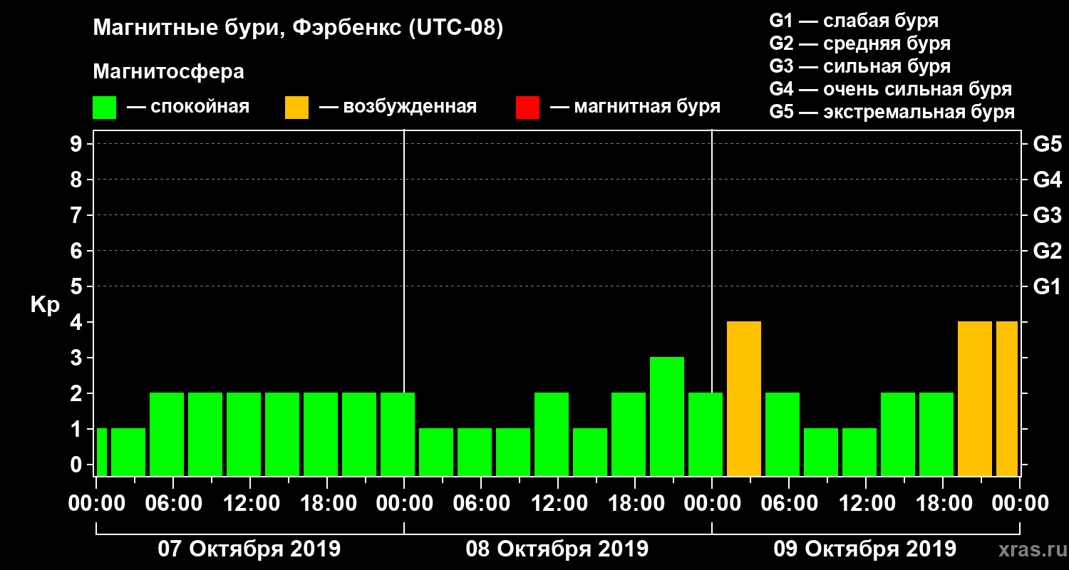 Магнитные бури в Фэрбенксе — 9 октября 2019 года