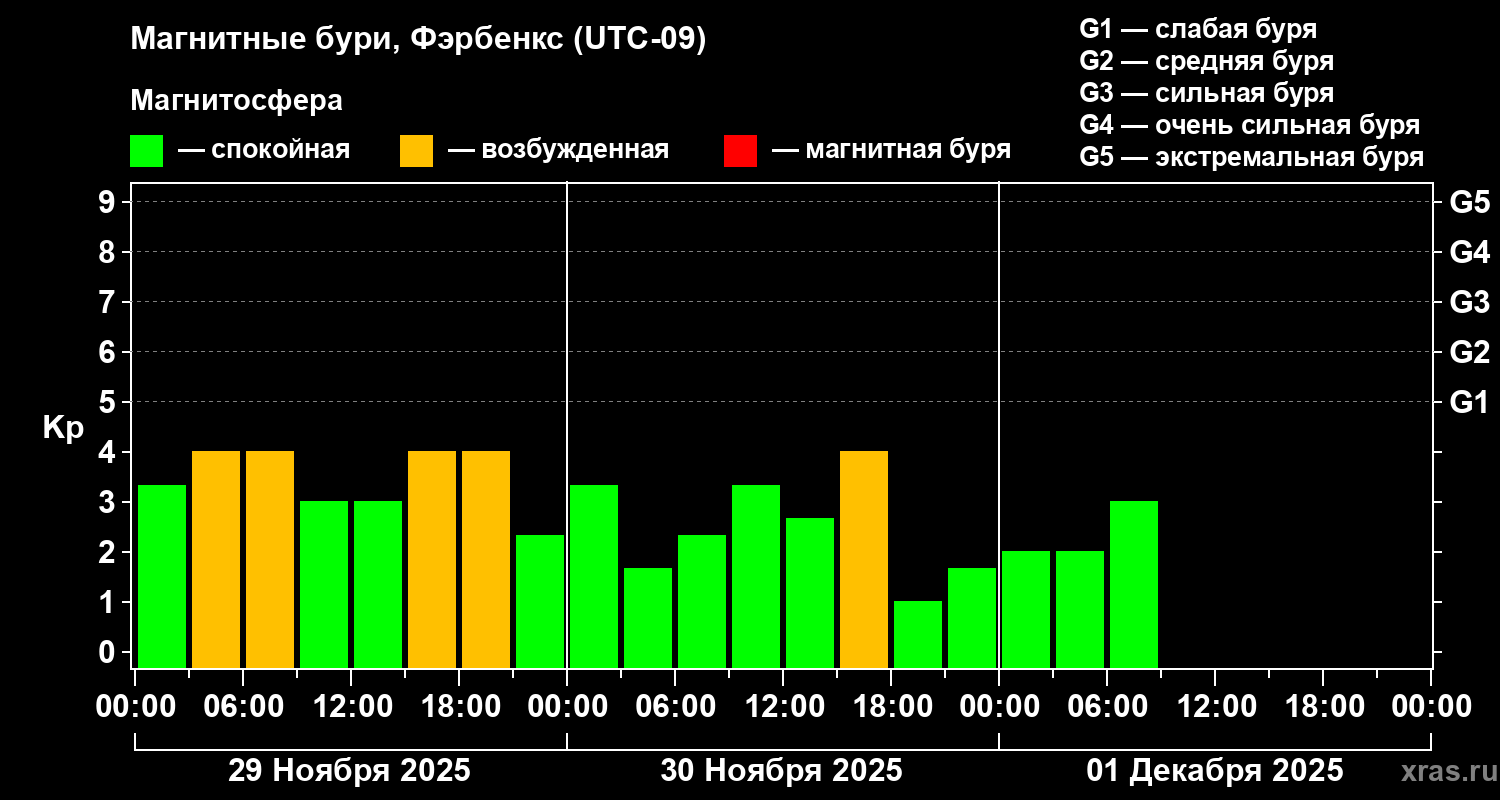 Магнитные бури в Фэрбенксе 1 декабря 2025 года