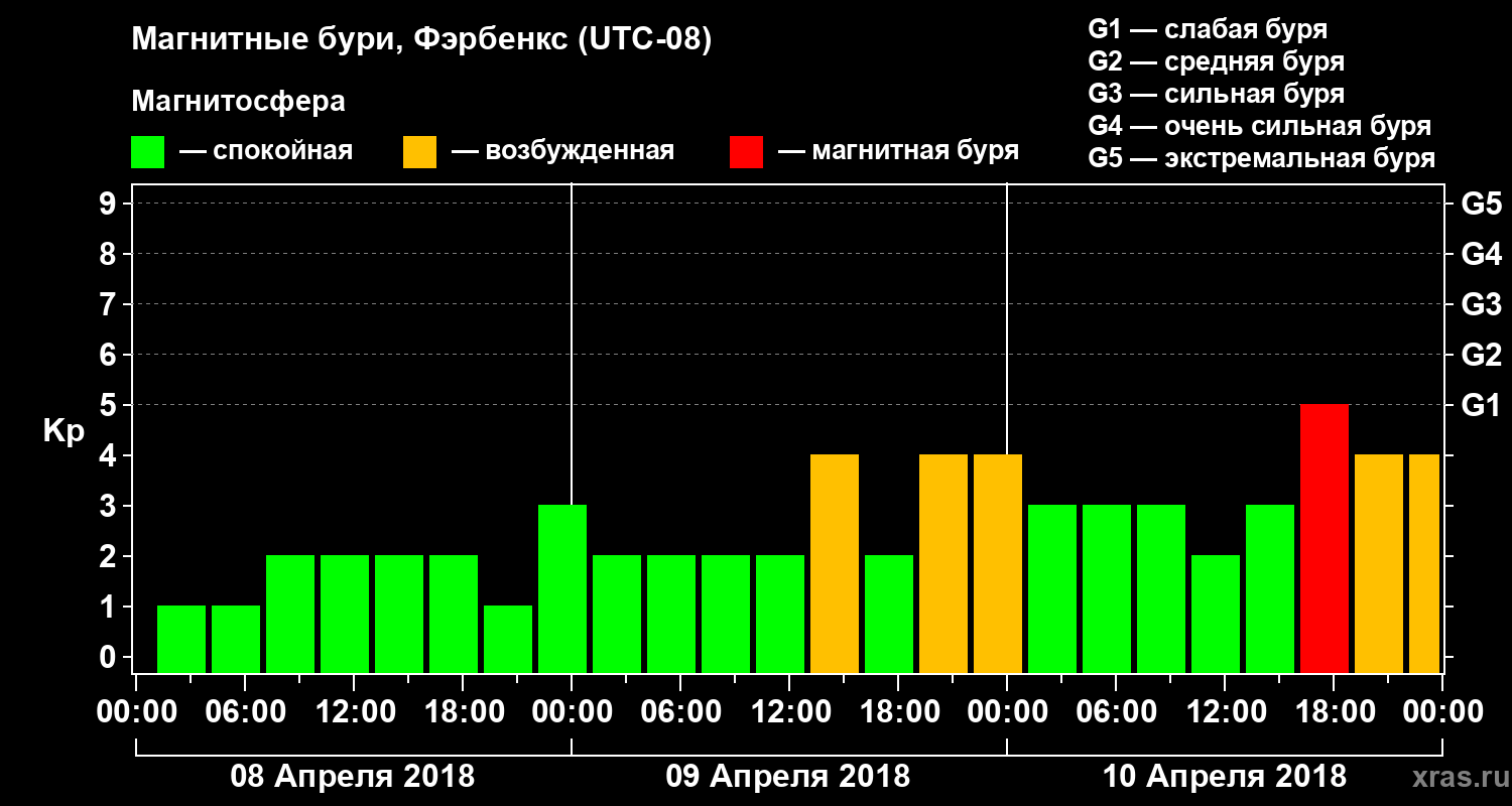Магнитные бури в Фэрбенксе 10 апреля 2018 года