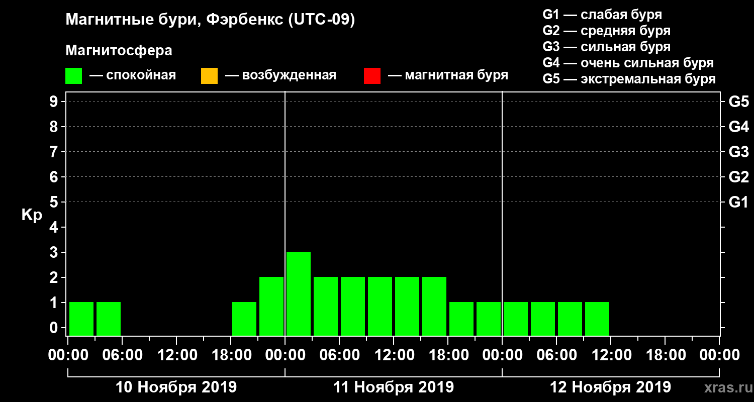 Магнитные бури в Фэрбенксе — 12 ноября 2019 года