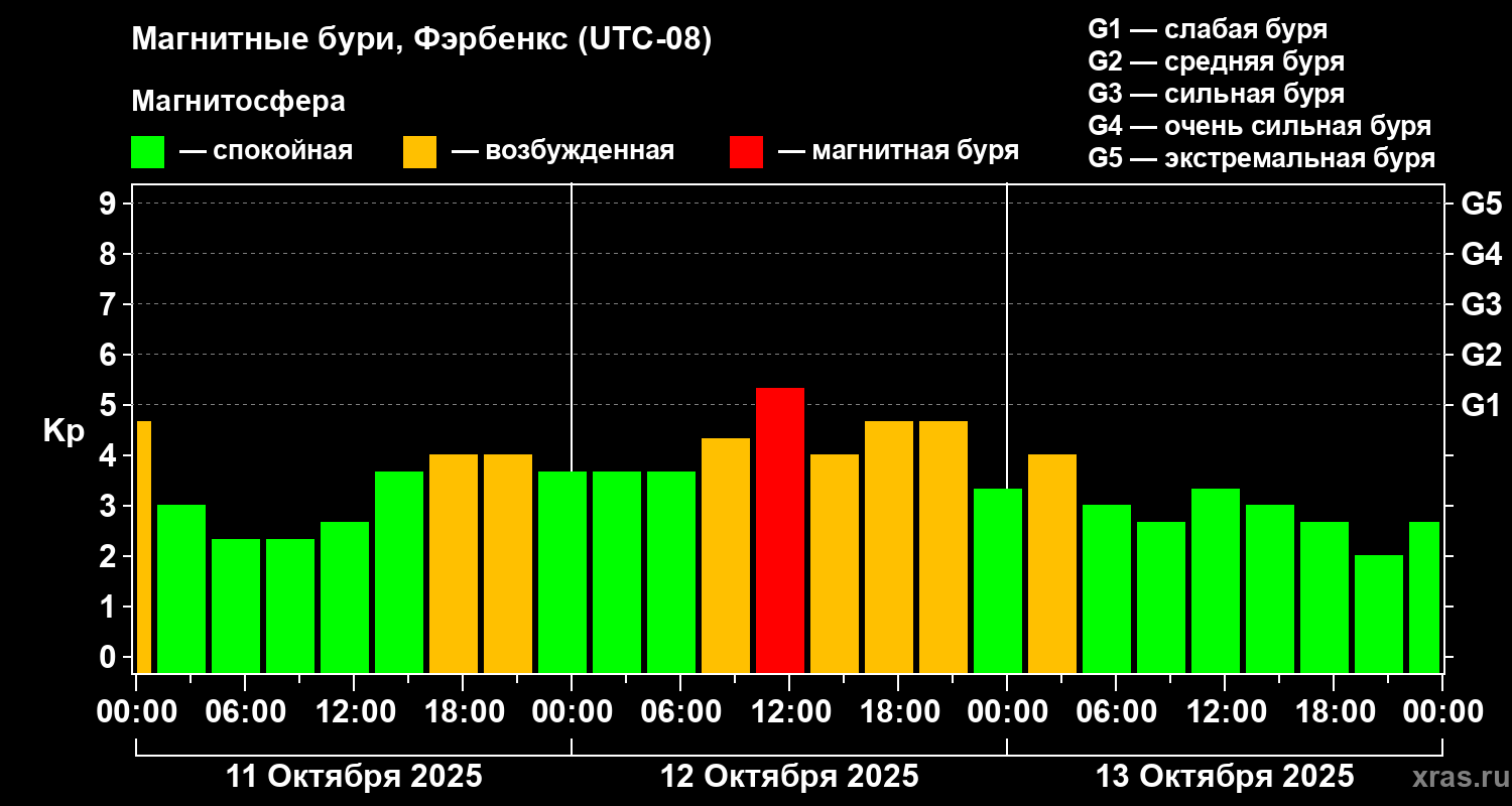 Магнитные бури в Фэрбенксе — 13 октября 2025 года