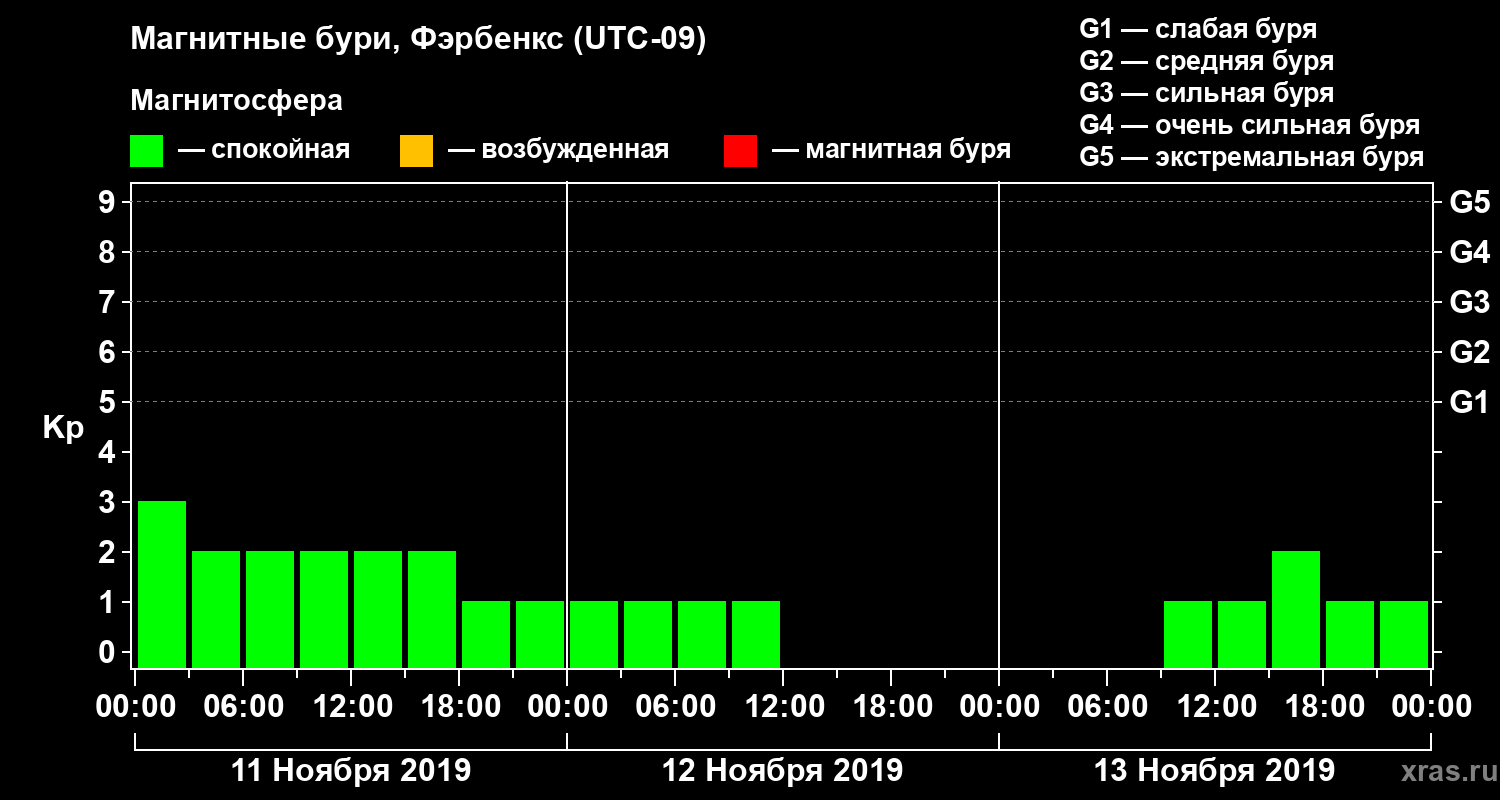 Магнитные бури в Фэрбенксе — 13 ноября 2019 года