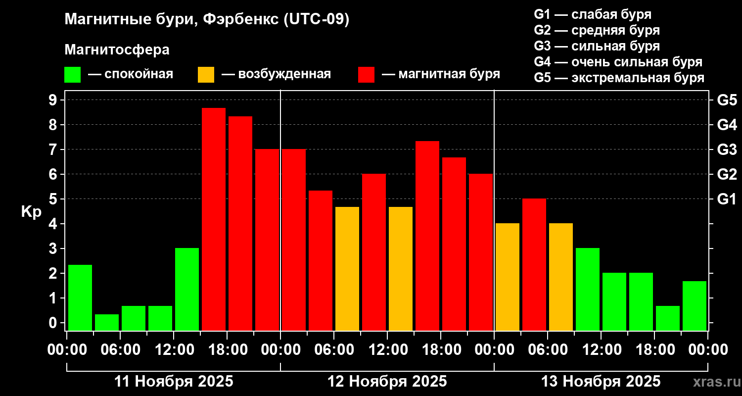 Магнитные бури в Фэрбенксе 13 ноября 2025 года