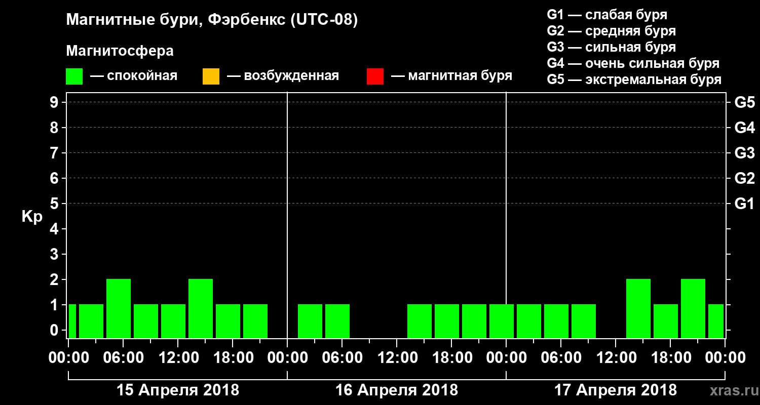 Магнитные бури в Фэрбенксе 17 апреля 2018 года
